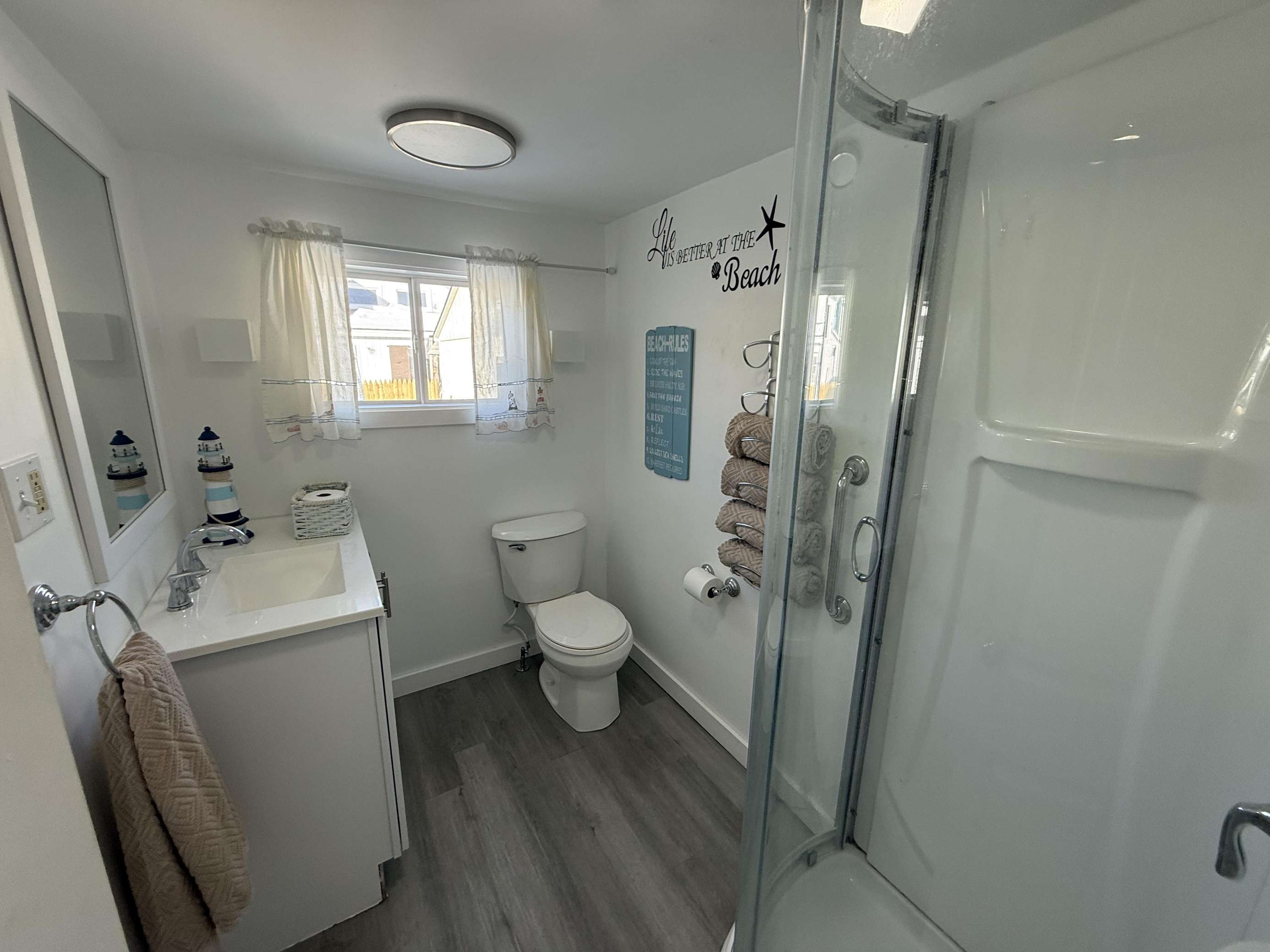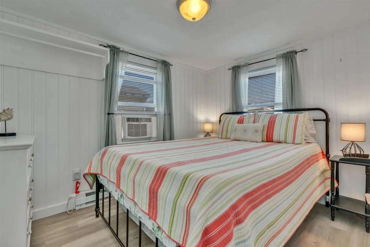 Charming 2 bedroom, 1 bath retreat just steps from Hampton Beach. This cozy rear unit offers modern comforts including 2 window air conditioners, WiFi, and a fully equipped kitchen with coffee maker, microwave, and range. Relax on the private deck or unwind in the picnic area in the side yard. Bedrooms offer a queen and a day bed with trundle. Just a short walk to the beach as well as restaurants, shopping and entertainment venues.