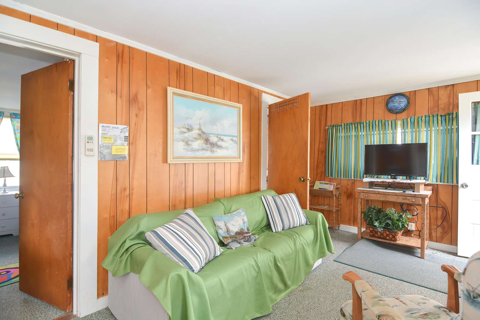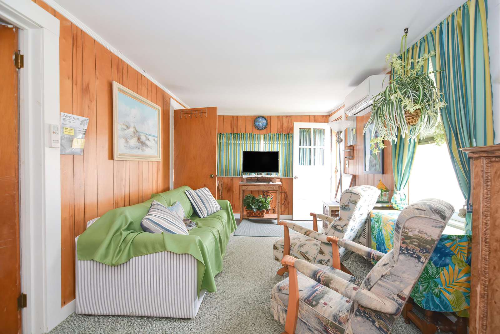 The rear cottage offers classic rustic Hampton Beach charm and offers 1 bedroom and 1 bathroom. Amenities include kitchen with stove, refrigerator and microwave. There is also a mini-split for air conditioning as well as WiFi and cable.