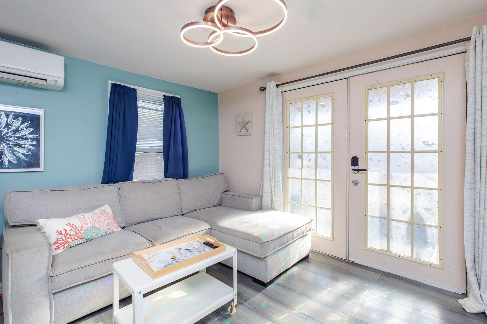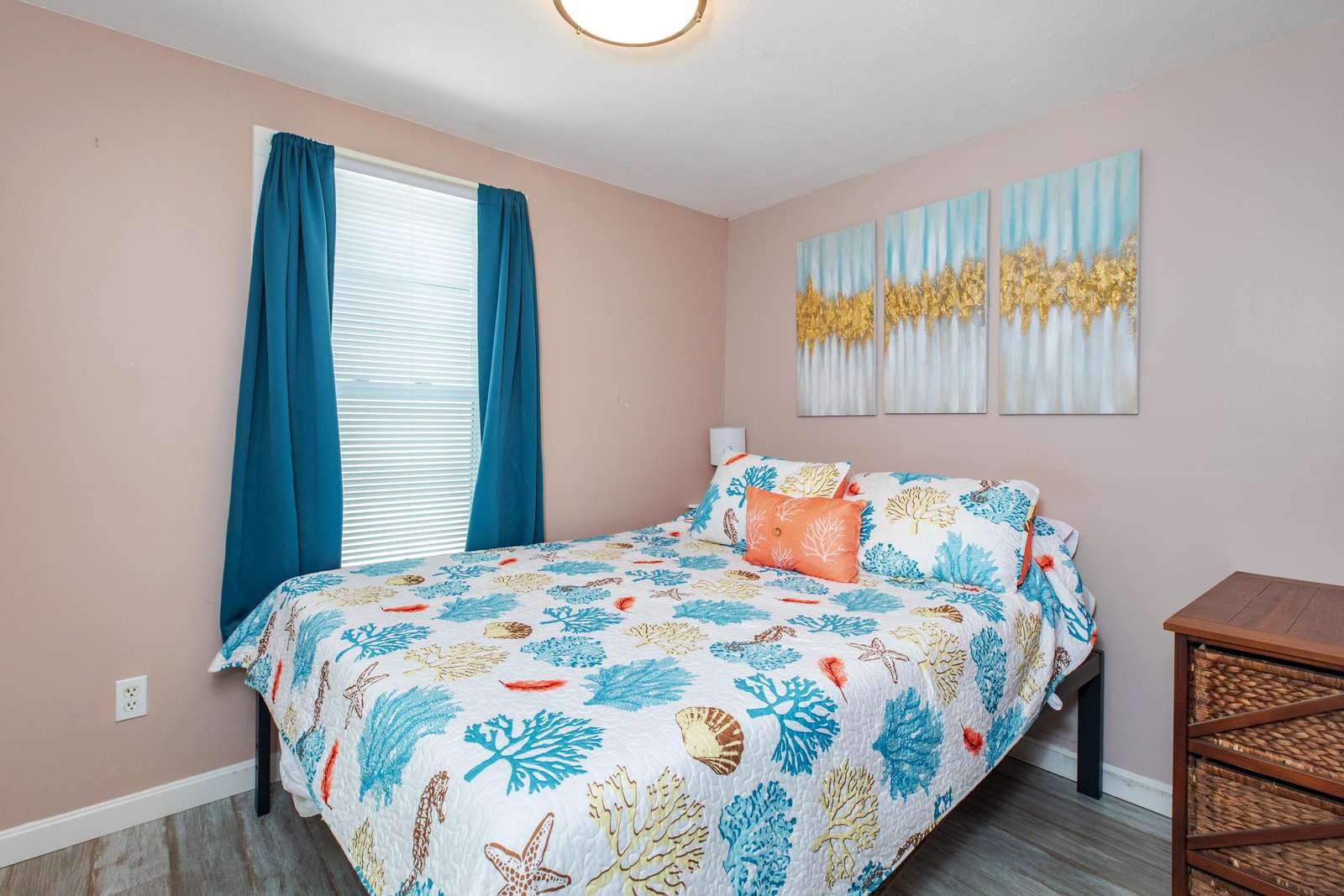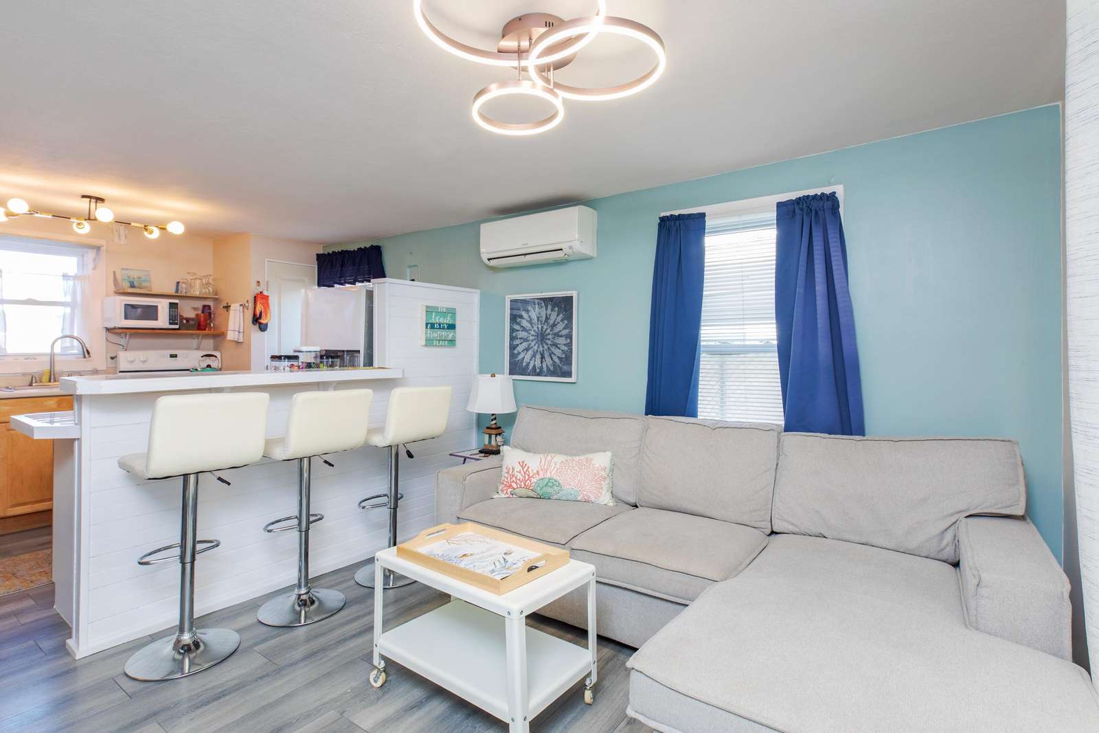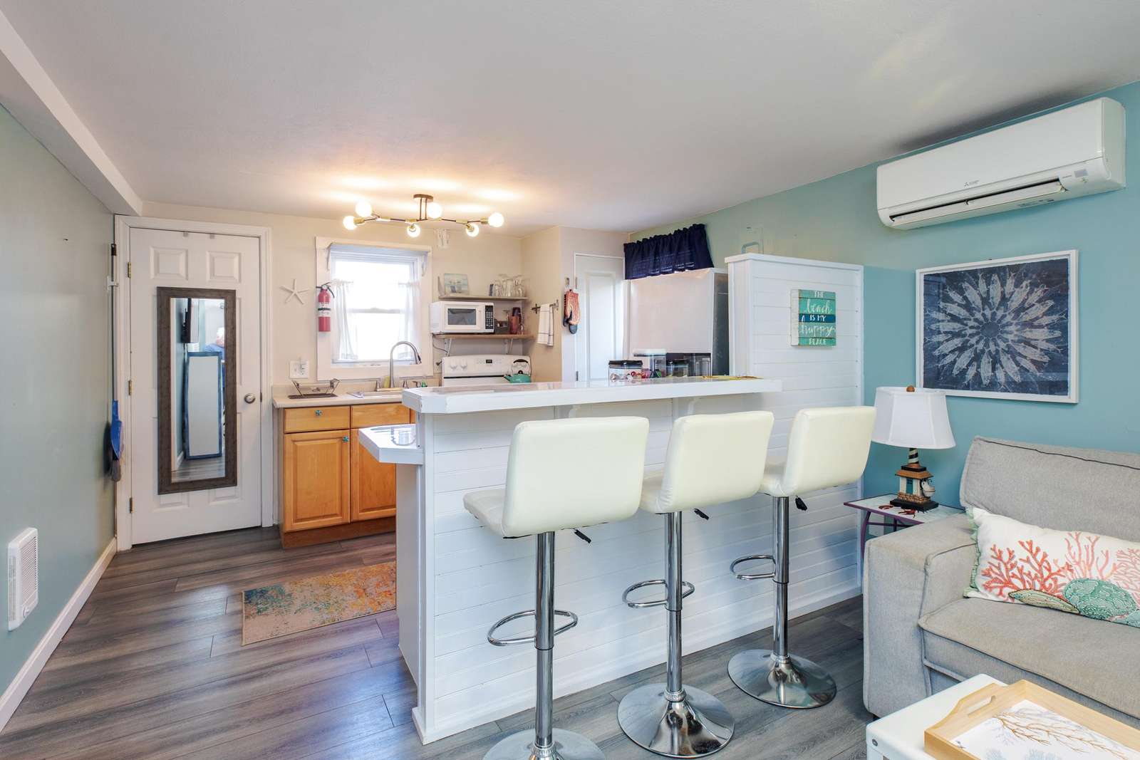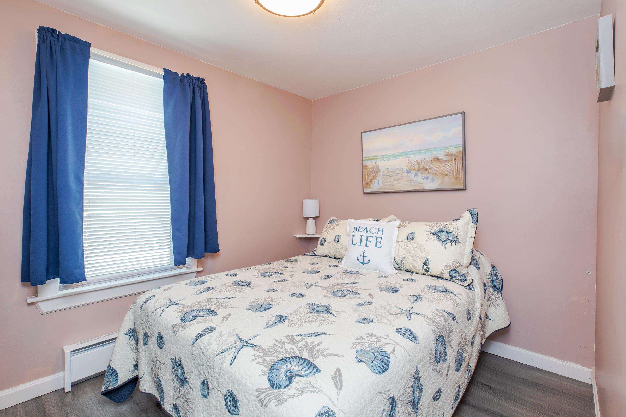 This charming duplex is located on eastern end of Island Path just a 5 minute walk to the beach! Each unit is 2 bedroom, 1 bath -rent one unit or both! The downstairs unit offers a covered porch with frontage on Island Path for excellent people watching. Through the front door is a living/kitchen area with breakfast bar and modular sofa that can turn flat for sleeping an additional guest. Each bedroom has a full-sized bed and the bathroom offers a stand-up shower. The living area also has a mini-split for efficient heating and cooling. Additional amenities include SmartTV, WiFi, full kitchen and one car parking behind the building. Short walk to all the attractions of Hampton Beach including restaurants, shopping, arcades and most importantly, the ocean!