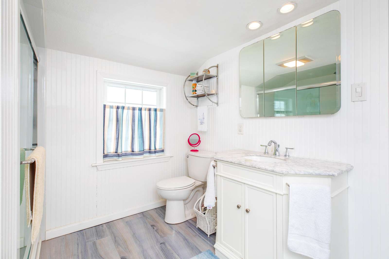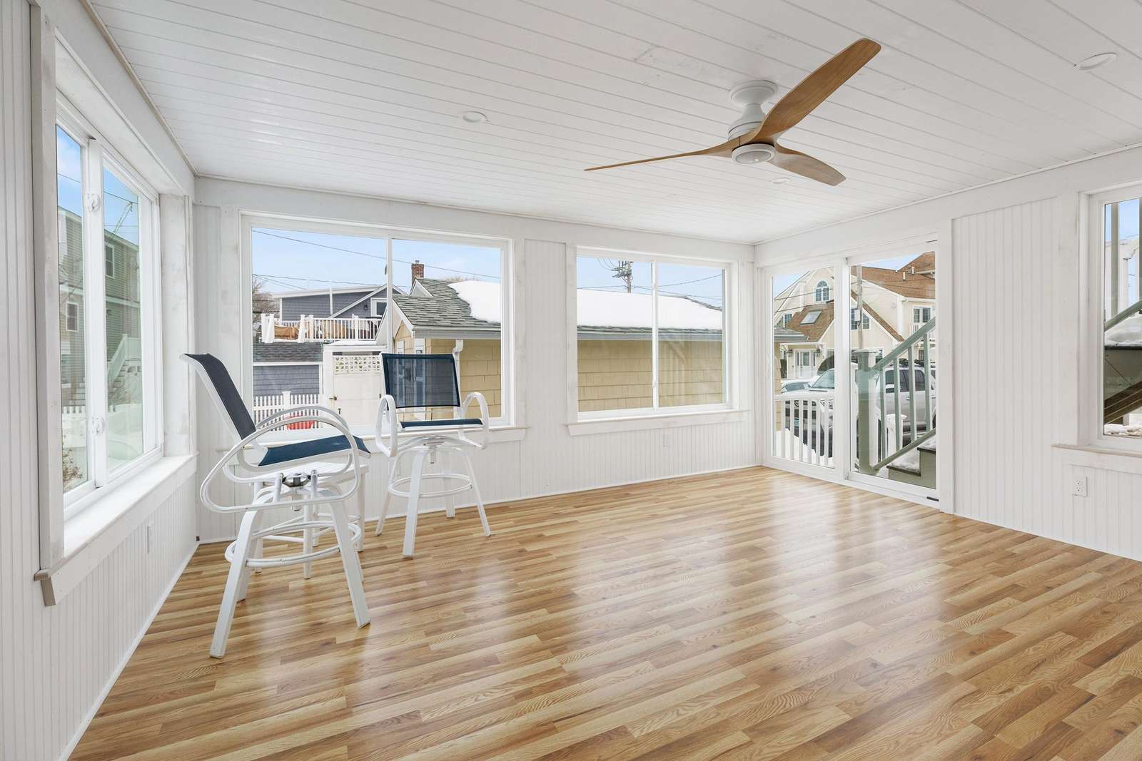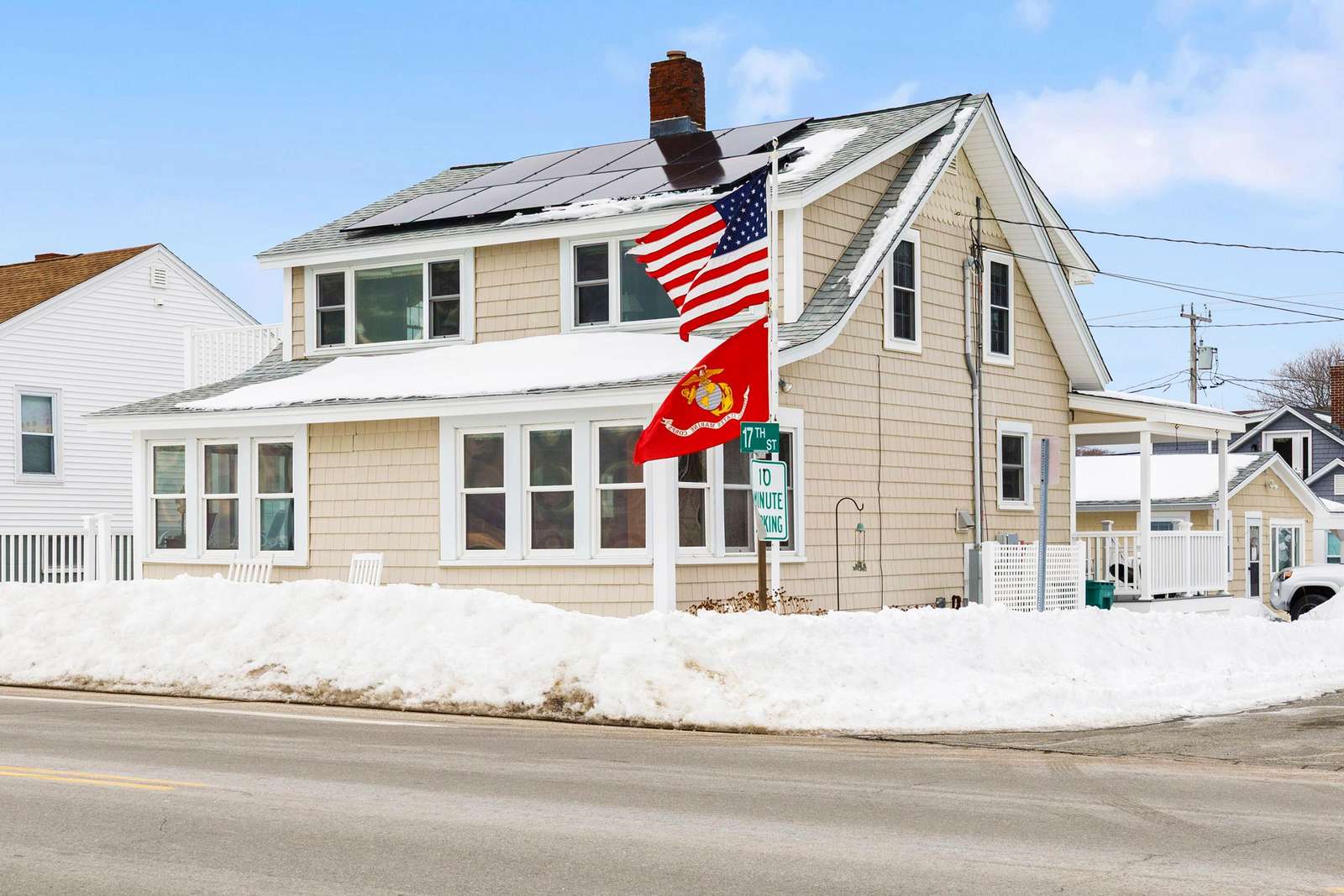Retreat to the second level to find two inviting bedrooms furnished with a Queen and Full bed, respectively. The primary bedroom serves as a true seaside sanctuary, offering unobstructed, sweeping views of the beach and ocean. The upstairs full bathroom has been beautifully remodeled to include a modern custom tile shower. While the main floor offers A/C, the second-floor sleeping area features plenty of windows designed to capture the refreshing ocean cross-breeze. Complete with modern amenities like WiFi and dedicated off-street parking for two cars, this home offers the ideal backdrop for your beach getaway.