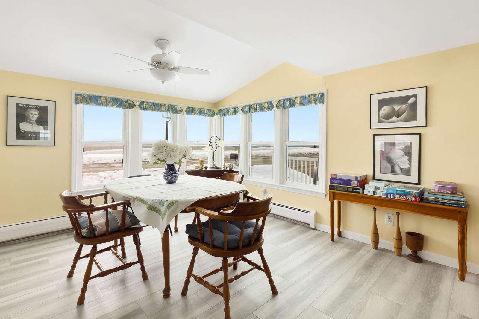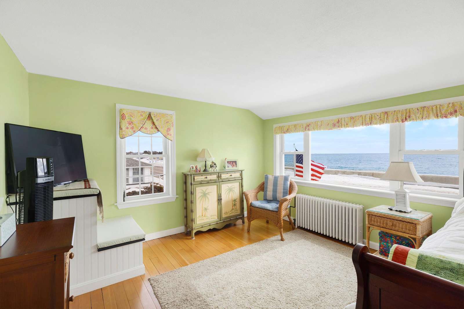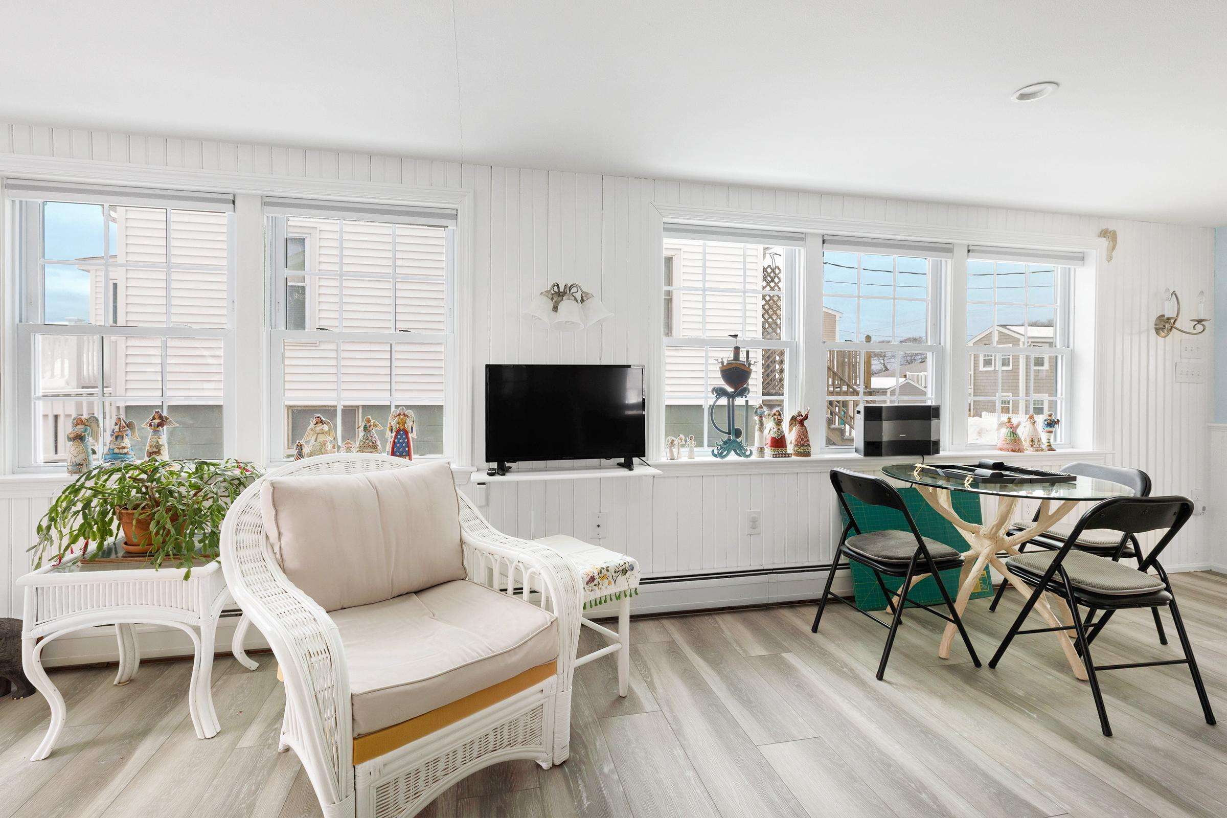 Pictures taken in the winter - living room wicker furniture pictured goes onto the three-season porch and living room has 2 recliners.