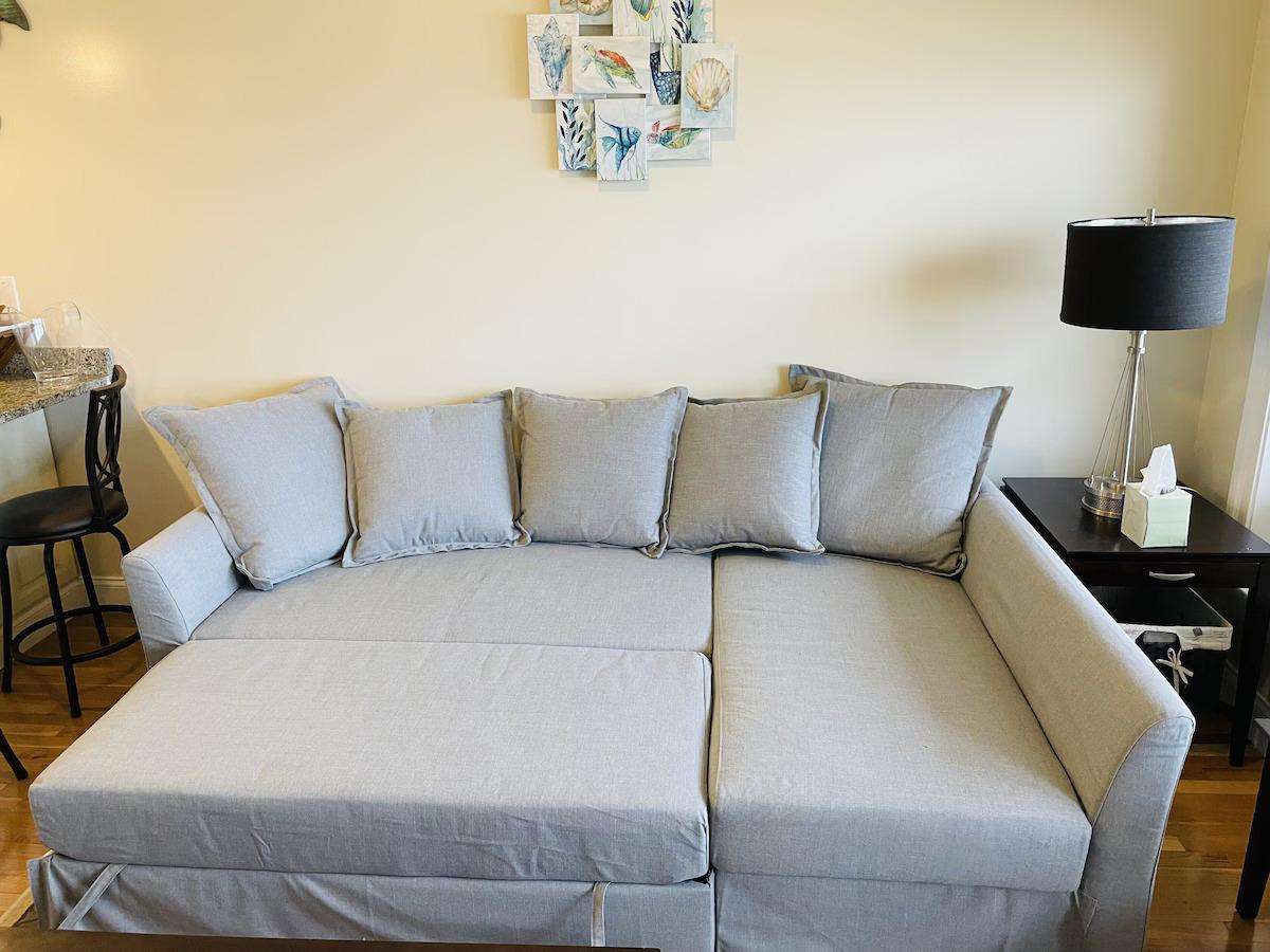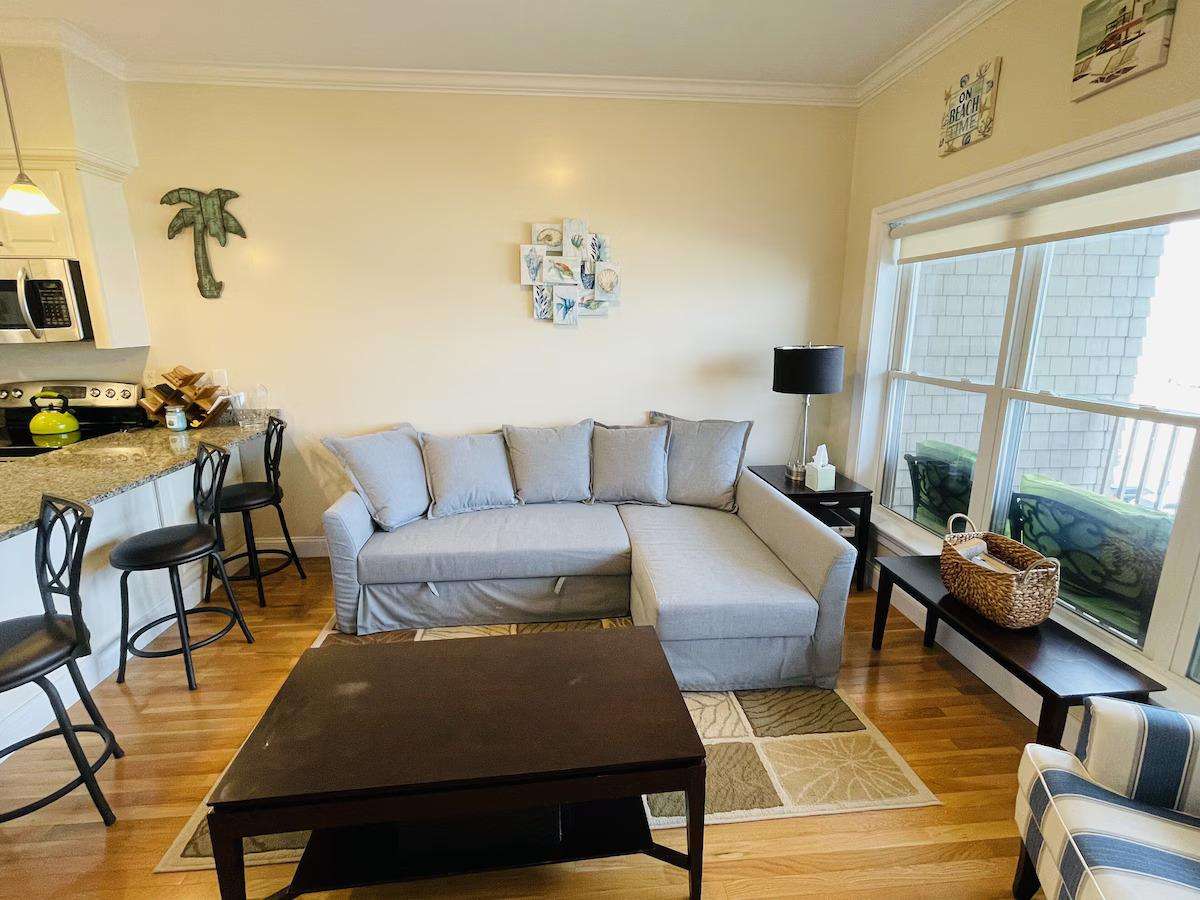 Enjoy the ultimate beachside retreat in this charming one-bedroom, top-floor condo directly across from the beach. With unobstructed, panoramic ocean views, you’ll have front-row seats to breathtaking sunrises and the soothing sounds of the waves. The open-concept kitchen and living area are designed for comfort and convenience, with large windows that open to a private balcony—perfect for relaxing with a morning coffee or evening cocktail. The fully-equipped kitchen includes a range, refrigerator, microwave, coffee maker, toaster, and all the pots, pans, dishes, and utensils you’ll need to feel right at home. The condo features one full bathroom with a shower, plus a washer and dryer and air conditioning for added convenience. The master bedroom offers a queen-sized bed, while the living room includes a sofa bed, offering flexibility for extra guests. An elevator in the building makes for easy access, and you’ll have one designated parking spot in the private, gated condo lot. Plus, you're just minutes away from the best dining, shopping, and attractions that Hampton Beach has to offer, making this the ideal spot for your next getaway!