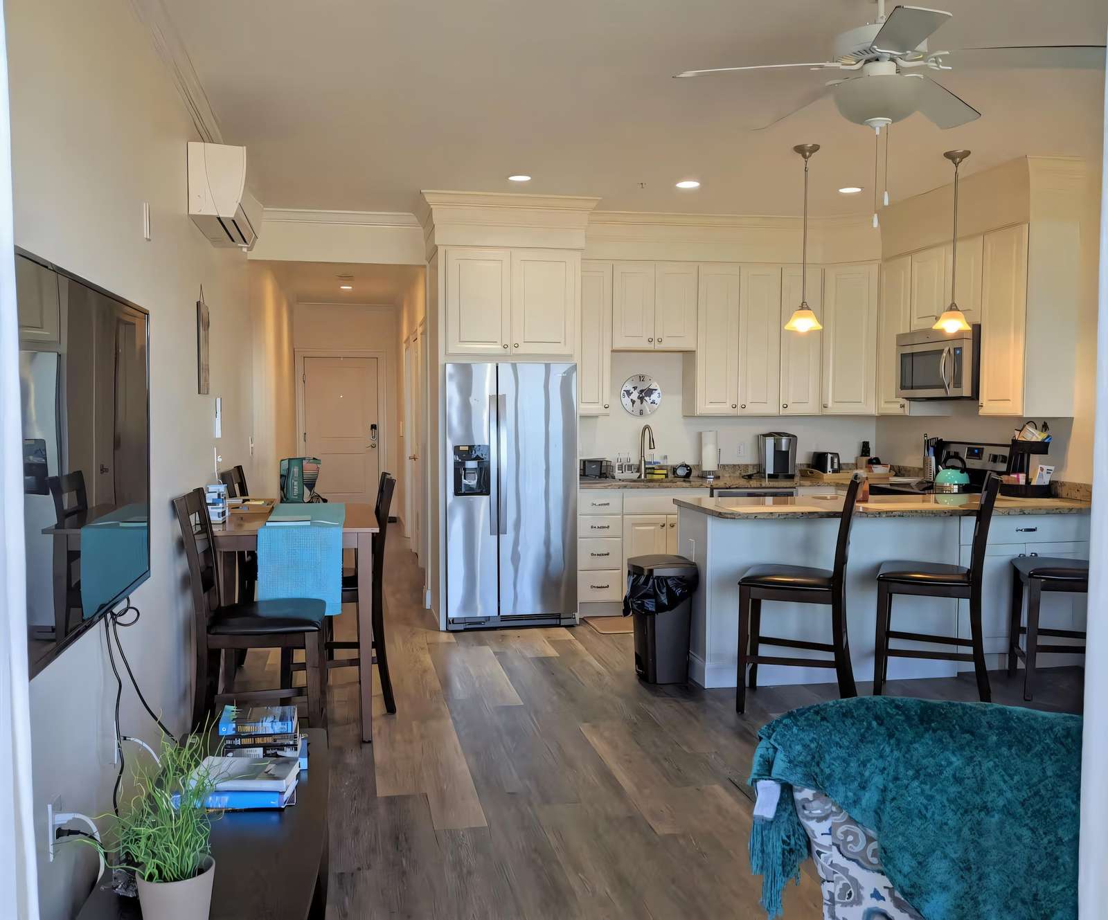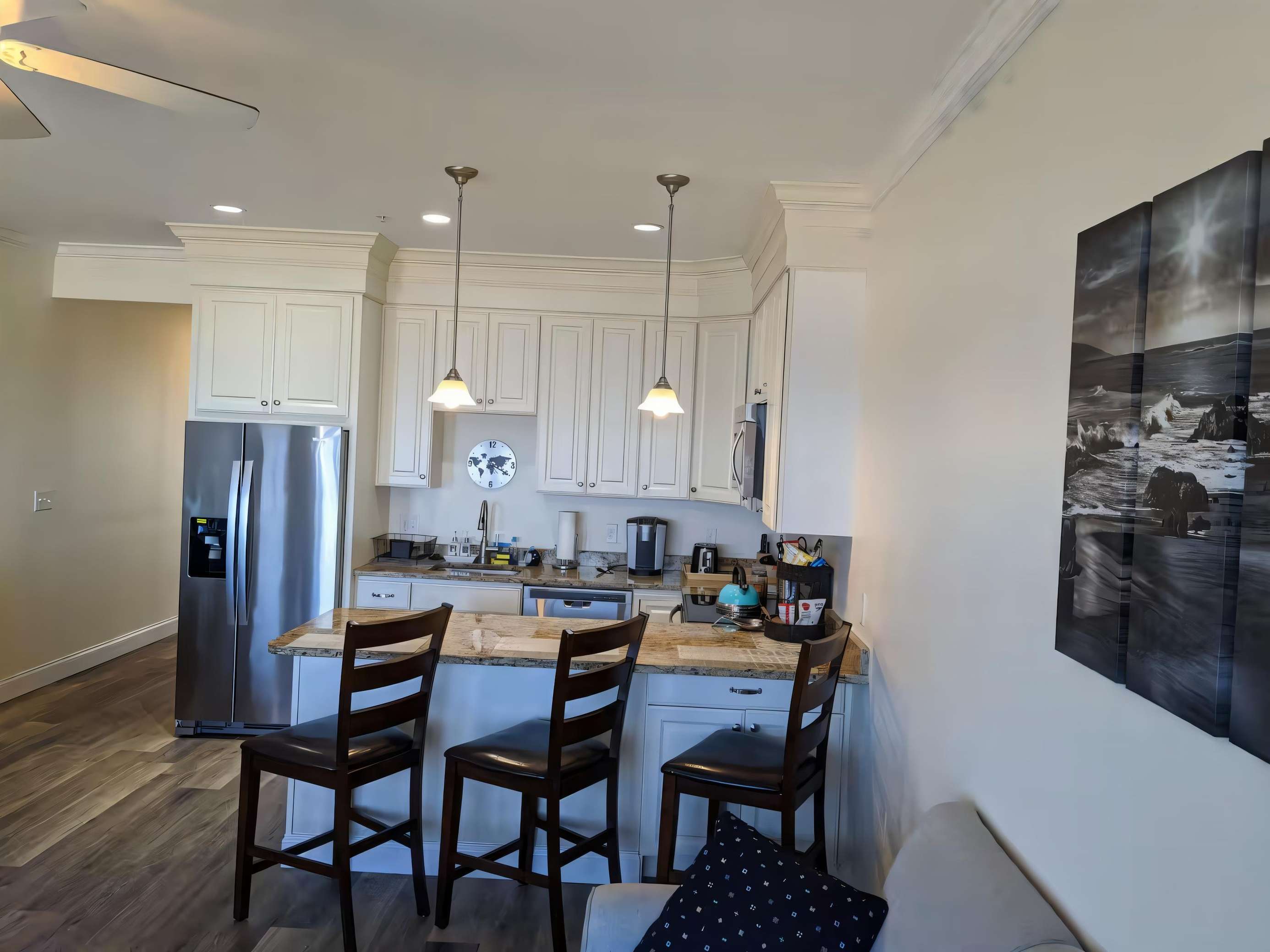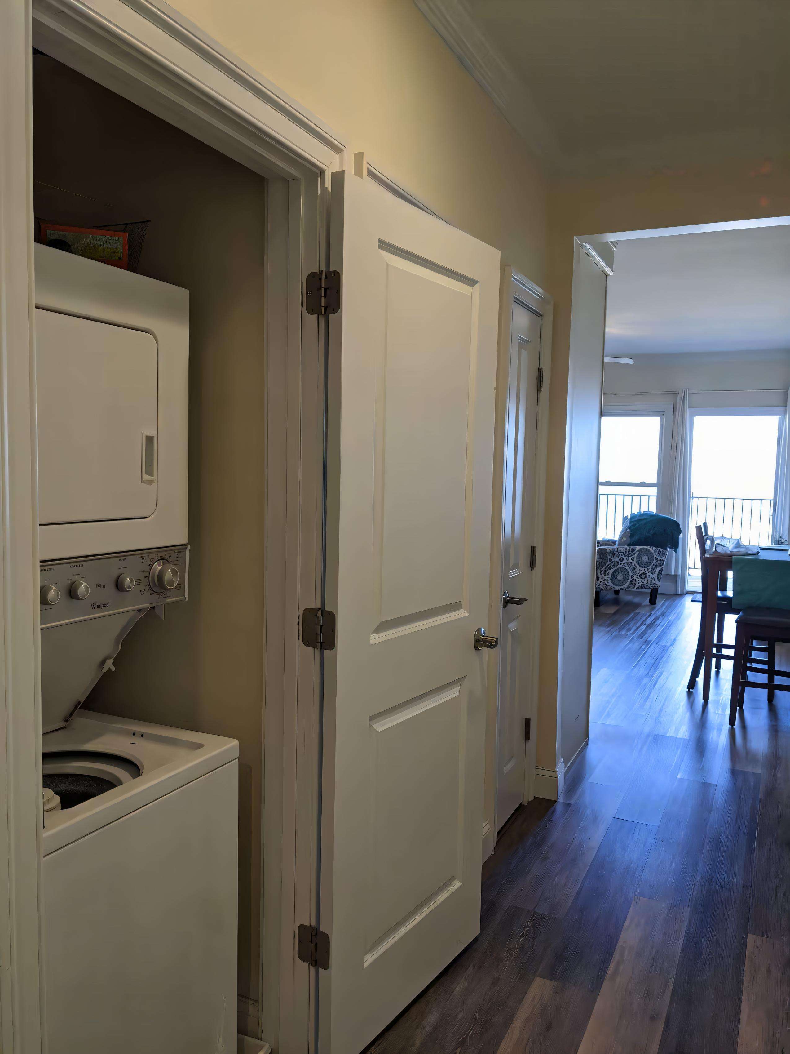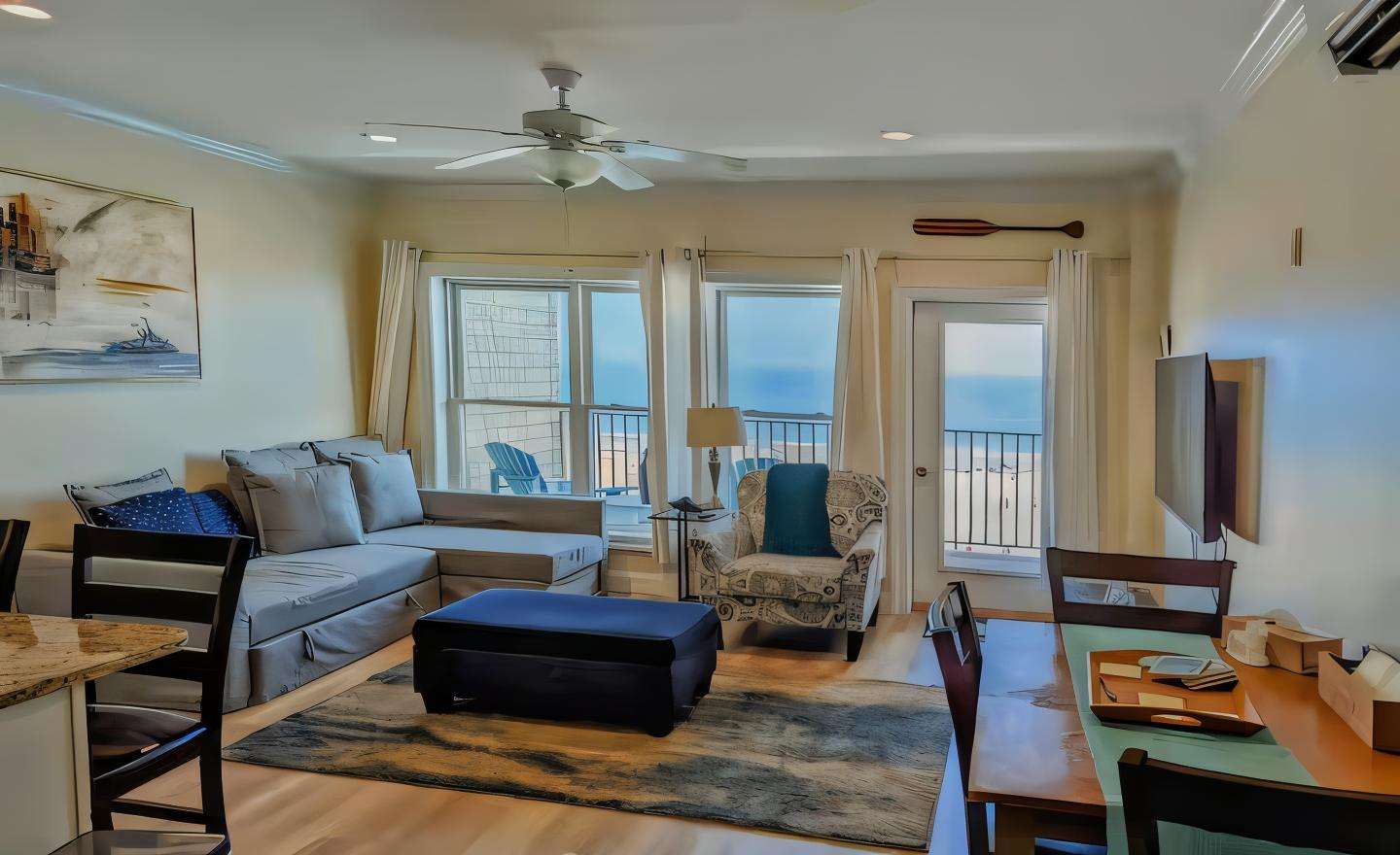 Experience coastal living at Surf Condos #504, a charming 1-bedroom, 1-bathroom oceanfront retreat in Hampton, New Hampshire. This condo offers stunning panoramic ocean views from a private balcony and deck, perfect for morning coffee or sunset relaxation. Inside, enjoy a bright, airy living space with air conditioning, a fully equipped kitchen featuring a dishwasher, and a cozy breakfast bar. The unit includes modern conveniences such as Wi-Fi, a washing machine, and dryer for your comfort. Just steps from the beach, you can soak up the sun, stroll the shore, or explore nearby local shops and dining. With one car parking included and allowing for up to four guests, this condo is ideal for a romantic getaway or a small family vacation. Elevator in the building for easy access to the 5th floor.